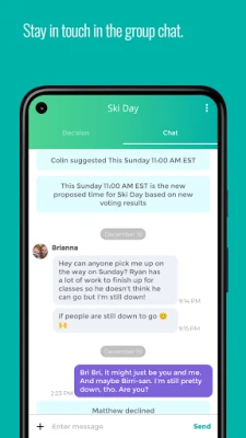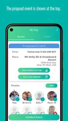 For everything else, there is a chat. Whose car are you taking? Running late? Have a picture to share? Use the chat.