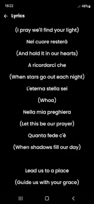 يشمل كلمات كل الأغاني الموجودة في التطبيق