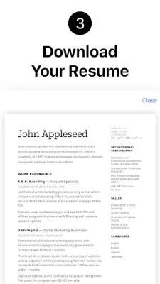 - 100+ professionally designed tried-and-tested templates - Writing tips to help you write best resume - Export resume as PDF - Preview your resume at any point - Job description suggestions