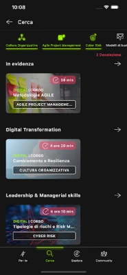 Esplora un mondo di opportunità educative personalizzate su misura per te nella sezione "Per Te". Grazie al nostro avanzato motore di intelligenza artificiale, ti offriamo una vasta gamma di contenuti formativi selezionati appositamente per soddisfare le tue esigenze di apprendimento. Che tu stia cercando di affinare le tue abilità professionali o di esplorare nuovi interessi, siamo qui per guidarti verso il successo. Hai un argomento specifico in mente? Nessun problema! Utilizza la potente funzione di ricerca nella sezione "Cerca" per trovare rapidamente ciò che ti interessa. Basta digitare una parola chiave o selezionare un argomento dalla nostra vasta gamma di categorie.